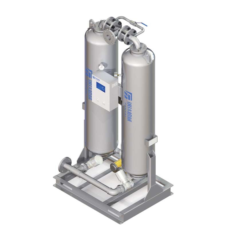 - 壓縮空氣由設備入口經閥門控制進入A塔吸附,得到凈化的壓縮空氣,由排氣截止閥輸出到下游用氣點。另由設備出口引一路干燥的壓縮空氣,經節流閥減壓后進入B塔,對B塔進行再生,吹出已經B塔吸附劑已吸附的水分。FX型無熱吸附式干燥機結構簡單,性能穩定,可廣泛應用于實驗室,醫院,海洋平臺等各種要求性能穩定、快速得到干燥壓縮空氣的場景。